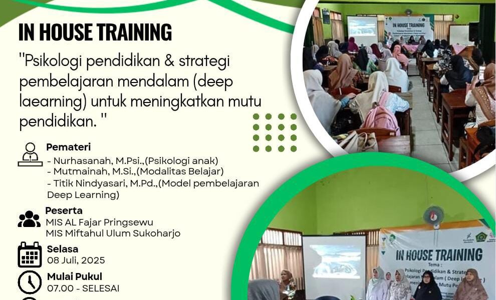 Sebagai bentuk ikhtiar dalam meningkatkan mutu pendidikan dan profesionalitas guru, telah terlaksana kegiatan In House Training (IHT) dengan tema: