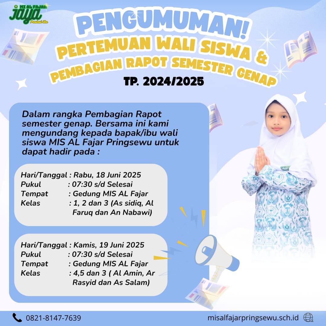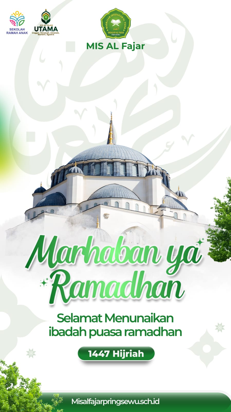 Keluarga besar MIS AL Fajar Pringsewu dengan penuh rasa syukur dan kebahagiaan menyambut datangnya Bulan Suci Ramadhan 1447 H. Bulan yang penuh rahmat, ampunan, dan keberkahan ini menjadi momentum istimewa untuk memperbaiki diri, memperkuat keimanan, serta meningkatkan kualitas ibadah kepada Allah SWT.
