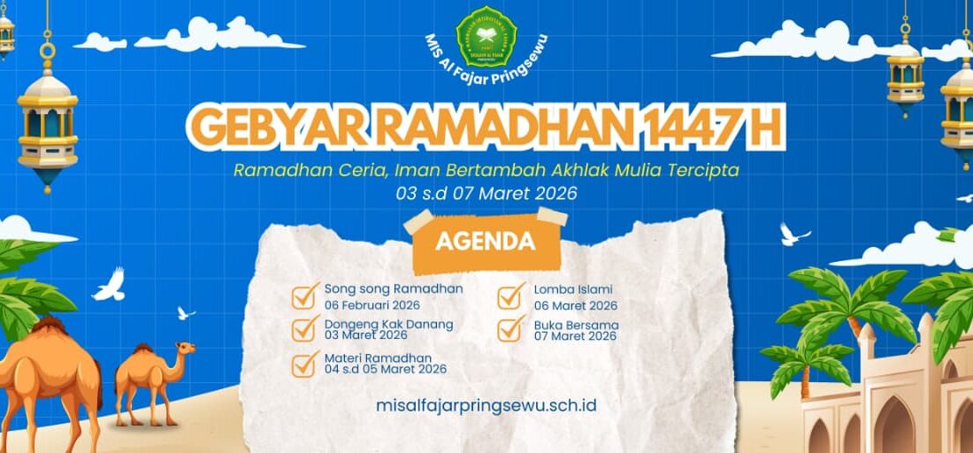 Dalam rangka menyambut datangnya bulan suci Ramadhan, MIS Al Fajar Pringsewu akan melaksanakan kegiatan *Song-Song Ramadhan* yang insyaAllah dilaksanakan pada: